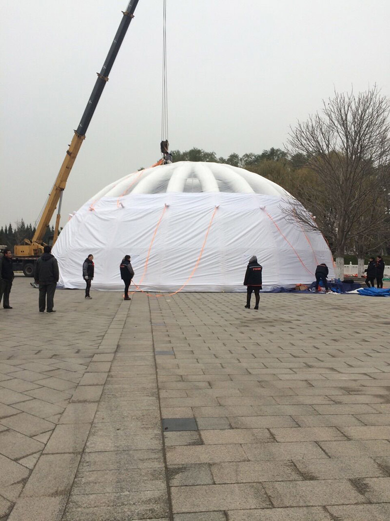2016年11月北京裴燊气膜科技有限公司为北京某公司的“锦鲤”配备的第二套大别墅(充气移动式膜结构帐篷)在今年第一场大雪及强冷寒潮来临之前正式开始启用!此产品为充气骨架式膜结构,直径18米,高7.6米。这是既湖南送变电工程(大型软体膜结构帐篷)和第一套鱼池大别墅(充气骨架膜结构帐篷)之后第三个采用“胡萝卜”式结构为主体的骨架式膜结构帐篷。此结构大大节省地面空间增加了内部使用面积为客户带来了便利。本产品在使用过程中得到了客户的肯定和赞扬。